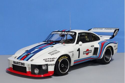 こんにちは。 ポルシェ935も小物部品(ワイパー、アンテナ)を取り付けて、いよいよ完成を迎えました。 今回は全体写真とまとめを報告します。ビッグスケールなので写真もフルHDサイズにしました。 全景 ~いつものブルー背景で。 背景シートのサイズが足り…