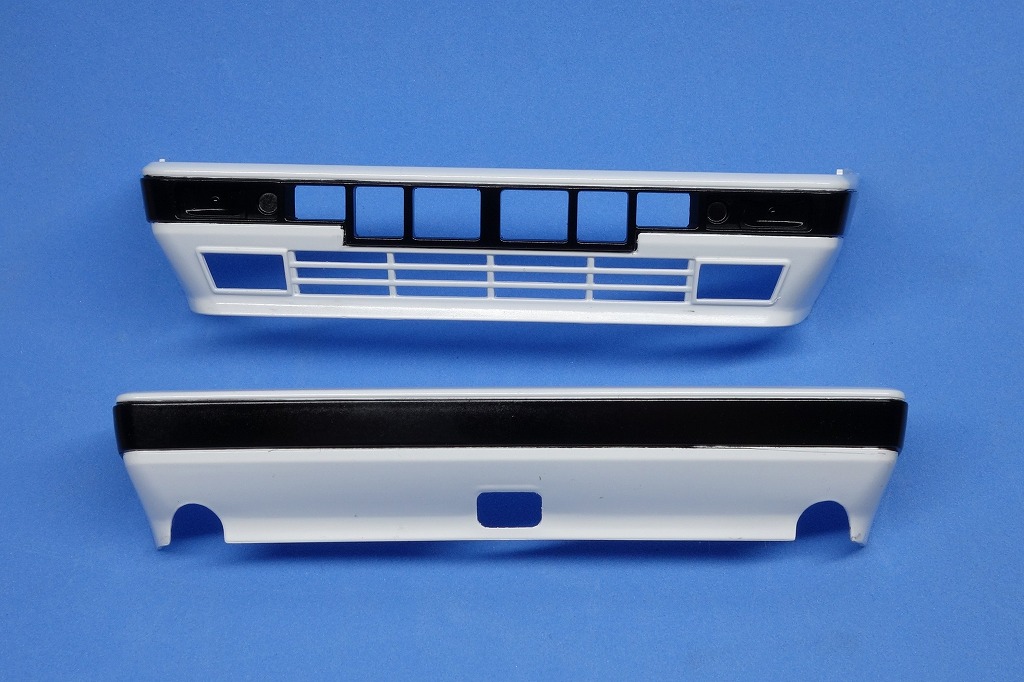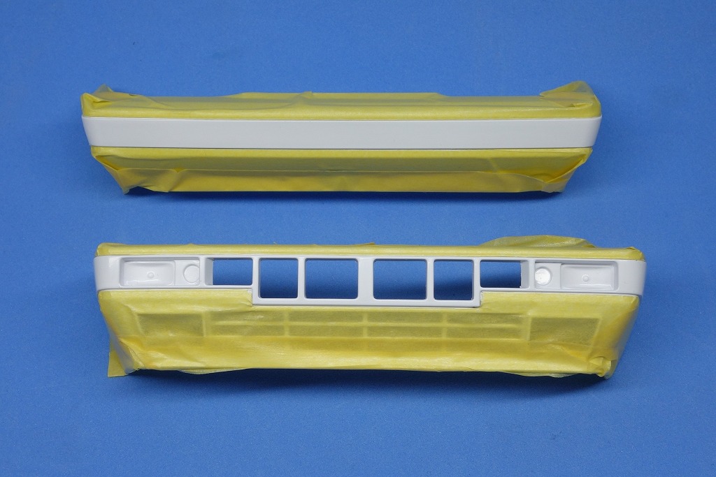 デカール貼り継続のために前後バンパーの塗り分けを行います。