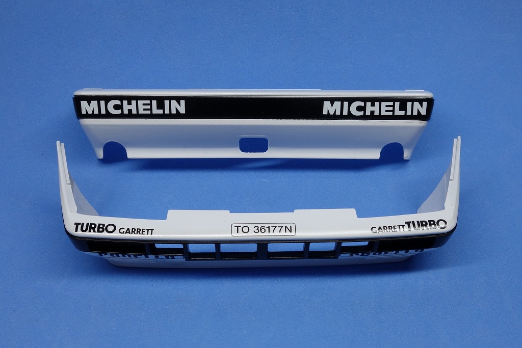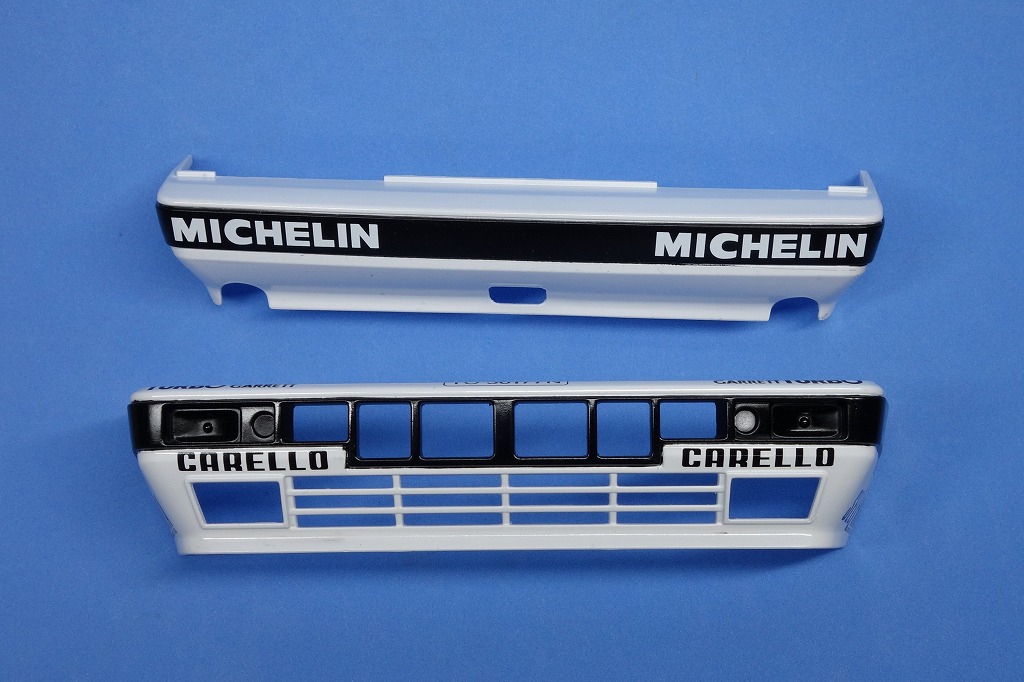 軽くクリアーを掛けて乾燥後、バンパー部のデカールを貼りました。