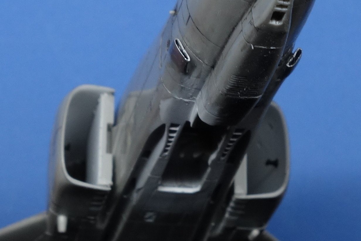 エアインテークのスジボリを復活し、尾翼も仕上げて取り付けてみます。