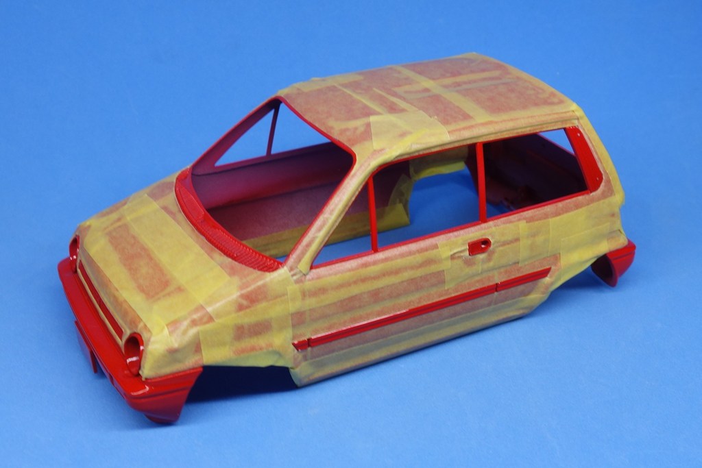 サフ乾燥後、表面を均してボディ色を吹きました。